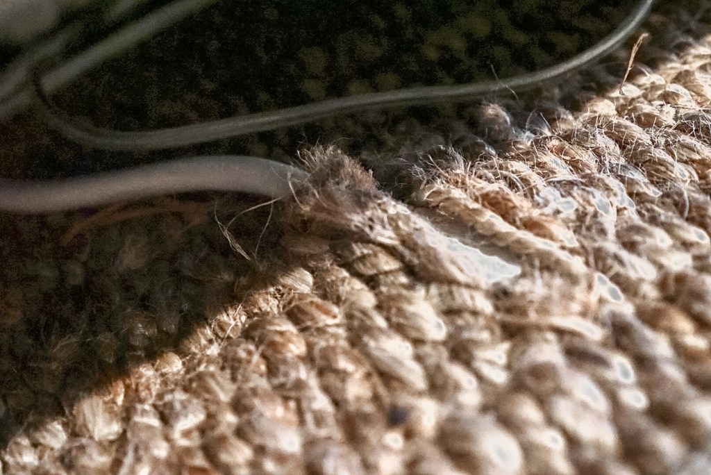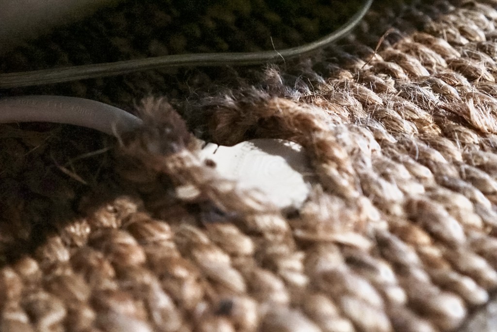 Another place you might not think to look for rugs is on eBay! When we decided we wanted a 9′ x 12′ jute rug to layer in our living room, I was on the hunt to find one for under $200. During my search, I came across some listings on eBay for “damaged” natural fiber rugs at super affordable prices. The rugs that were labeled as damaged were marked down due to loose threads, small stains, or other minor flaws that hardly affected the quality of the rug, especially since it was going to be used as a layering base! I made an offer to the seller and got the price down to just $170, which is a STEAL for 9’x12′ rug. We purchased a rug that was labeled damaged due to loose threads, and the rug arrived in near perfect condition. We hardly notice the loose threads, and, at that price, I didn’t feel bad about cutting a hole in it to access our floor plug!