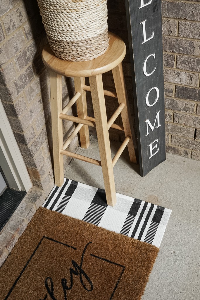 Pro Tip: I love layering a cute patterned rug underneath a regular doormat for a more custom, designer look, that is still functional for wiping your feet!