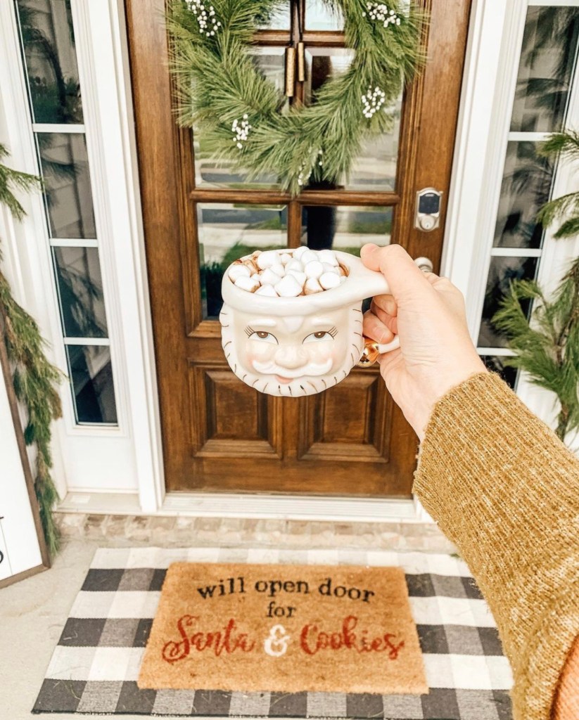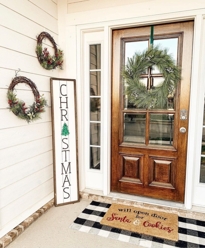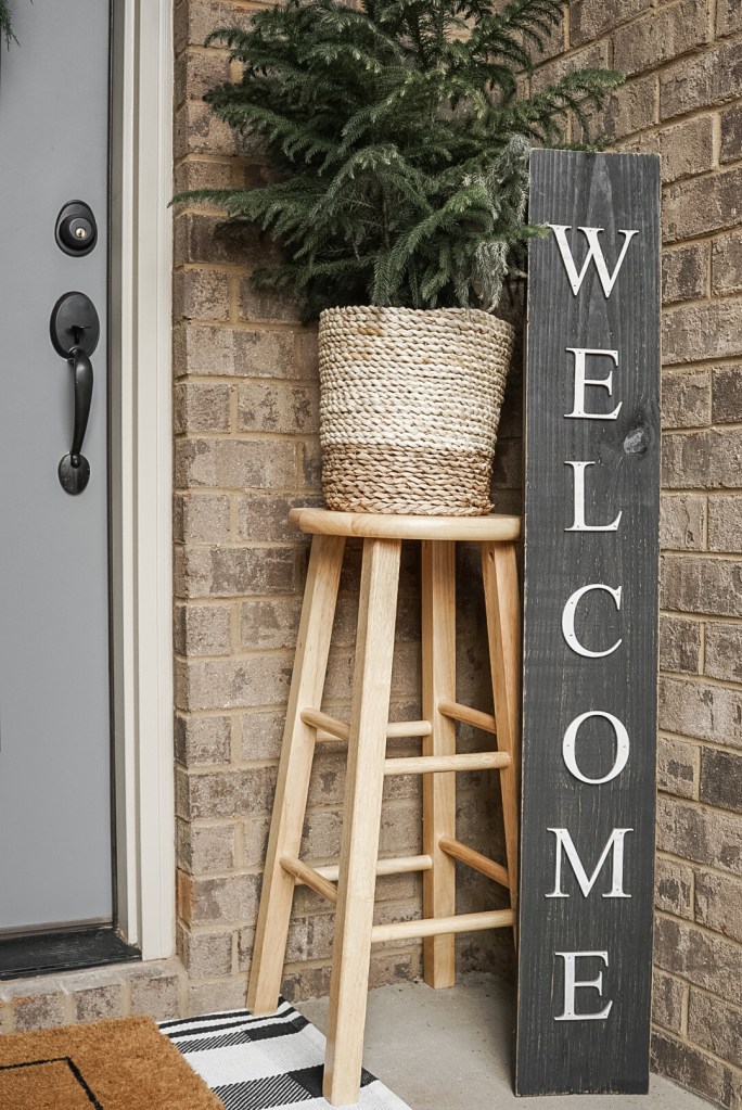 I got this little welcome sign from a local antique store for $35! The vendor makes these herself in a variety of colors, but I love the classic black and white. I use this sign all year round, and it blends perfectly with all of my decor! If you wanted a more seasonal sign, I’ve seen a ton of cute signs on Etsy and Amazon and say “Merry Christmas” or “Merry and Bright” or some other common Christmas phrase!