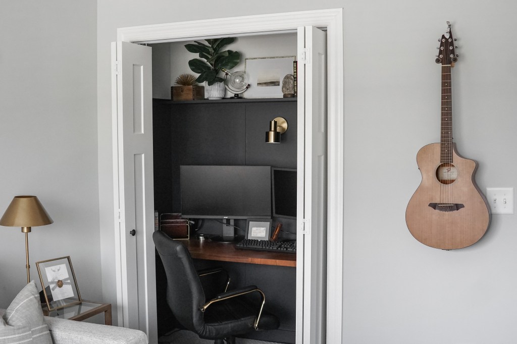 So this led to the idea of the cloffice! Since the wall with the closet was really the only option for a second desk, I thought, why not get rid of the junk closet and turn it into a functional desk nook? Could be fun, right? RIGHT! Literally the perfect solution to so many problems. I’ll get to why a bit later, but for now, I want to keep going with the thought process behind the design for this space.