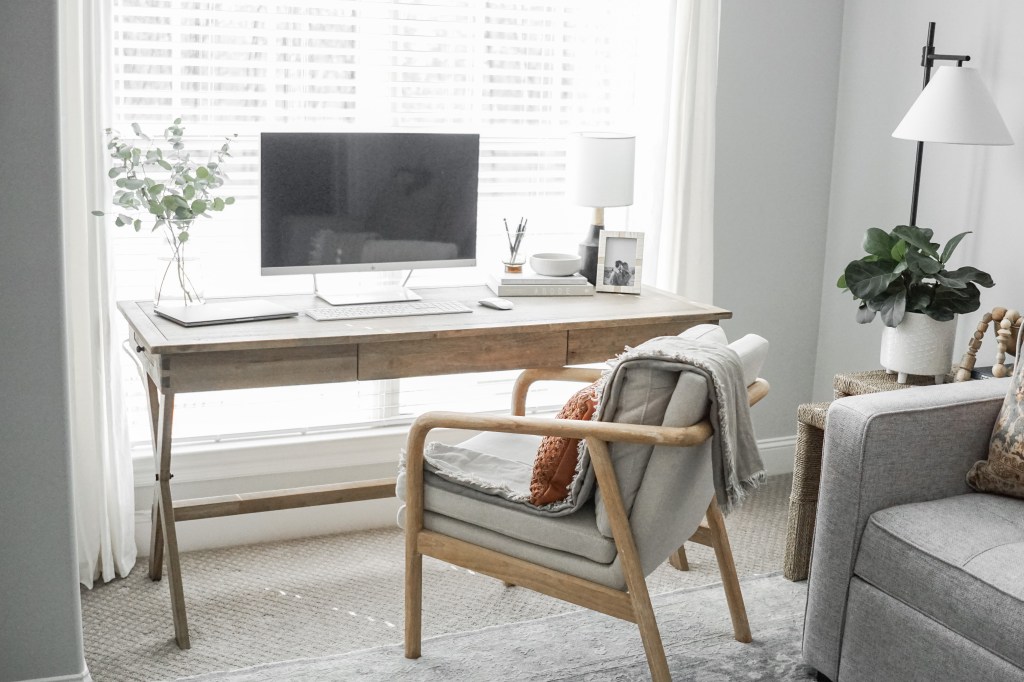 For the desk, I knew I wanted something that was real wood, had a timeless design, had at least one drawer for storage, and was light (in terms of how it looks) and open so that it would block the least amount of light possible since it was in front of the window.