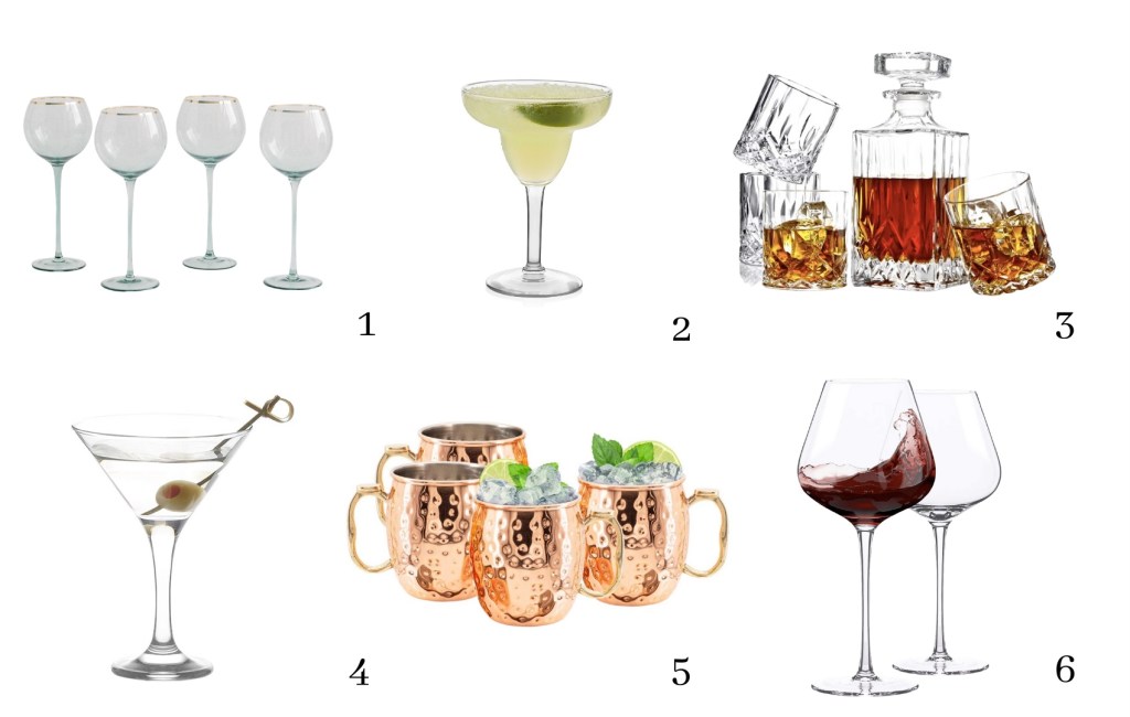 On our bar cart, we’ve currently got two sets of glasses: wine and margarita. I found the margarita glasses at a thrift store for fifty cents, and the wine glasses from a local small business called Hughston & Co.