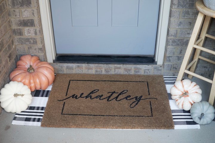 So I don’t know who started this layered doormat trend, but I’m a big fan, especially because we use this same doormat all year round! Changing up your layering rug with the seasons is an affordable and easy way to add seasonal flair to your porch with a piece that can be washed and reused again and again. We used this one from Amazon all through last fall and winter, and it washed up great when we switched it out for a different one in the spring. This will be it’s second season on our porch, and I’m certain it will not be its last!