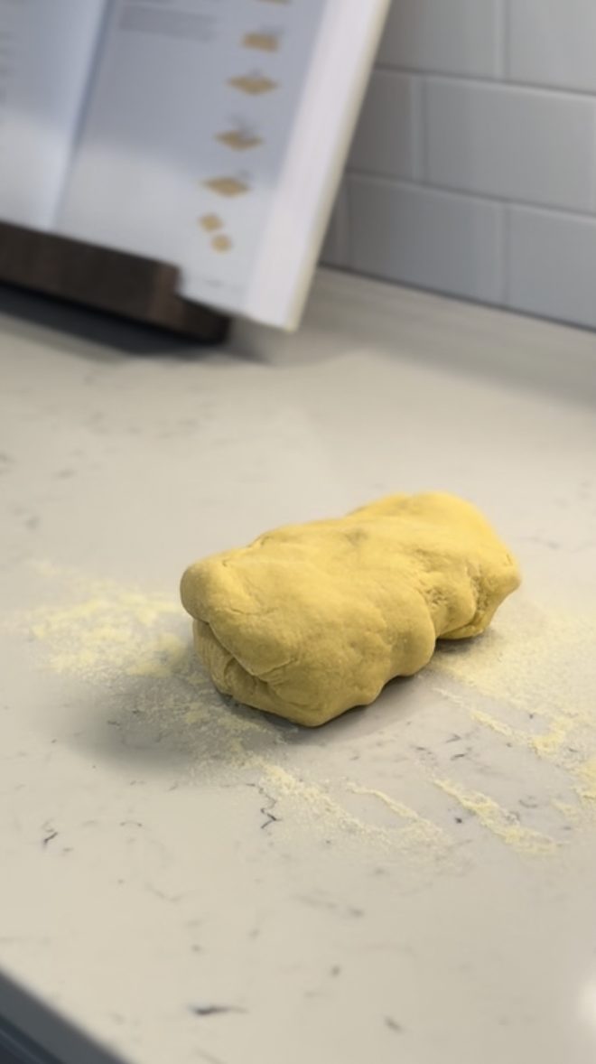 - Once the dough is a consistent texture, split the dough into 2-3 smaller pieces (this makes it easier to work with)