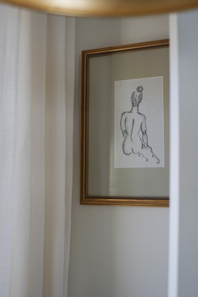 I also layered in a couple of smaller, original art pieces that I’ve collected to bring in some unique and special elements to the space. The small landscape in the vintage gold frame on the dresser is an original from Humbled Craft Co, and the sketched silhouette on the wall by the window is an original from Hemi’s Handmade Silhouette’s. See my post Seven Places to Source Affordable, Original Artwork for more details and my tips for sourcing original pieces at any price point.