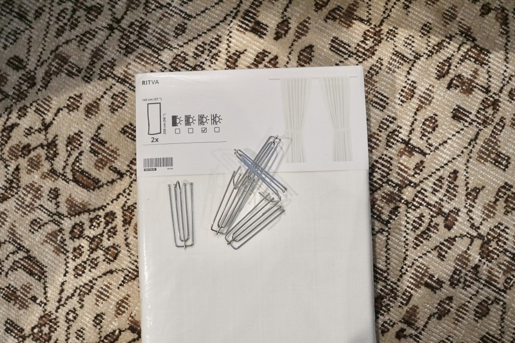 Since we have blackout shades on our windows, we don’t necessarily need curtains, but I wanted to use them to bring something soft and flowy into the space to contrast the hard surfaces and clean lines of the furniture. After seeing the Ikea Ritva hack from The Grit and Polish I decided to give these $40/pair DIY pinch pleat curtains a try. Although they were tedious to pleat and sew, I LOVE how they turned out (especially for that price)!