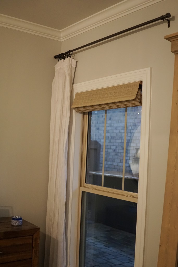 New curtains made such a difference in this space. Previously, we had the sheers pictured below hung with standard ring clips that looked lifeless and cheap.