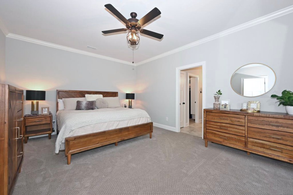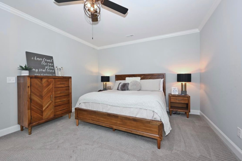 When we built our house in 2019, we had carpet in all three bedrooms and the entire house was painted the same color: Sherwin Williams Silverpointe. In 2022, we decided to re-paint the primary bedroom and replace all of the carpet in the house with the same hardwood floors we had in our main living area.