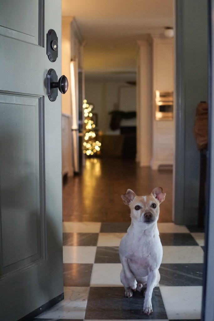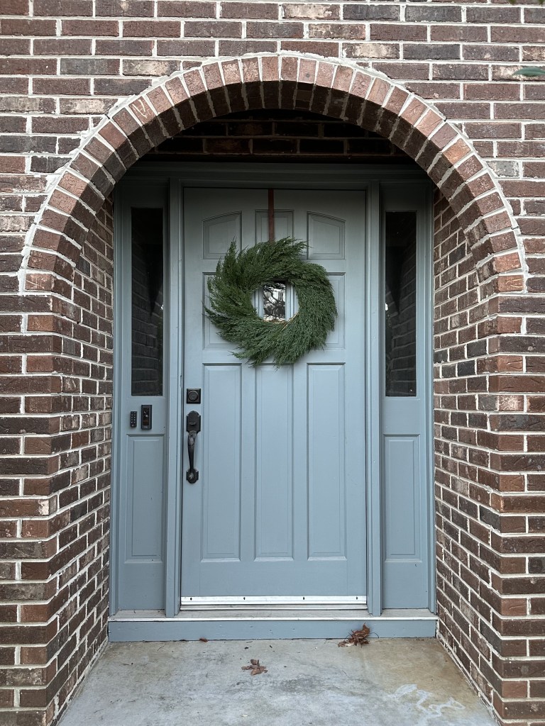 I seriously love how the doors turned out. The earthy green color feels so fresh compared to the dingy browns that were on the patio and the garage entry doors. While a bit more reserved than the teal color that was previously on the front door, I think the new color really complements the Tudor style of our home and the color of our brick. While I love the paint color we chose for the doors, the real star of the show is the new hardware from Grandeur. The beautiful design and finish makes them feel like jewelry for our door and I love knowing our home is secured with quality hardware that is made to last. The more we invest in our home—whether it be through renovation projects, thoughtful updates, or investing in quality pieces—the more I come to appreciate the beauty of interacting with things we truly love in our daily lives. I’m grateful that even the smallest touches, like a fresh coat of paint and beautiful, well-crafted hardware, can transform the everyday things, like entering and exiting our home, into something special.