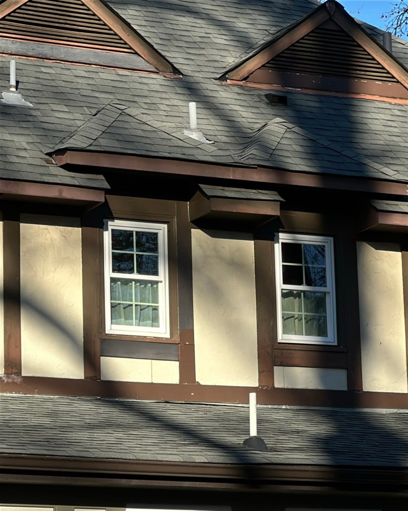 Something I love about our shower is the view of the trees. Our yard backs up to a little creek so there are quite a few trees behind our house and the view is so beautiful — especially in the fall when the leaves begin to change colors. I didn’t want to lose that view by covering the full window with a privacy film or frosted glass, but I also wanted to add some privacy. While there was always the option to just cover half of the window with a film or frosting, I didn’t love that idea because I felt like it would look unfinished or like an afterthought. A waterproof cafe curtain seemed like the best of both worlds because it felt like an intentional solution that would give us the privacy we needed while leaving the top half of the window clear and unobstructed. I think this option felt more intentional than the other half-covered window solutions because cafe curtains are a common window treatment — especially for an English style home like ours!